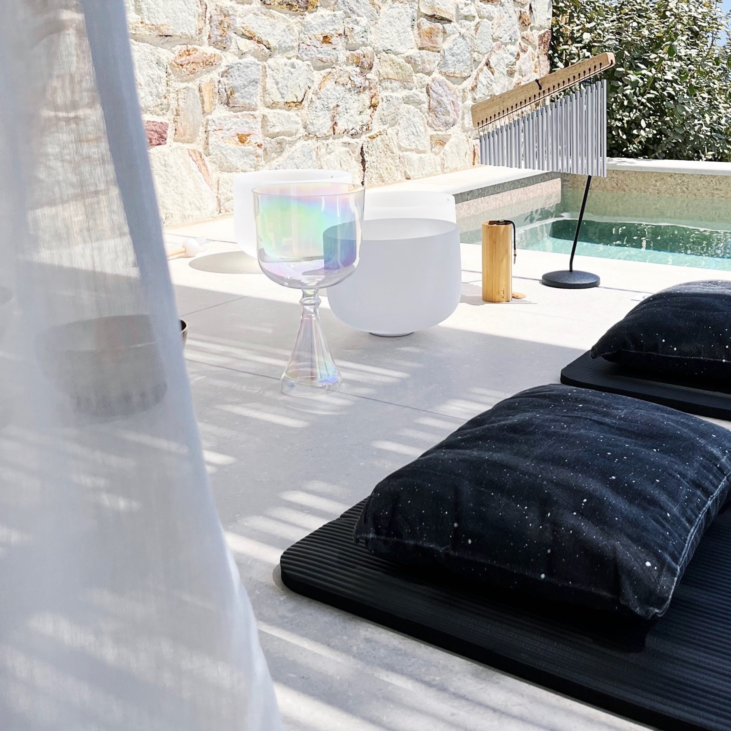 Now we offer regular Sound Baths on the beach, surrounded by the elements of Kimolos. Whether you’d like to join a sunset class or book a Private Sound Bath at your accommodation, you’ll find everything you need on our website.